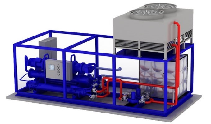 Bơm để lưu thông nước lạnh từ các máy làm lạnh thông qua các cuộn dây nước lạnh và lưu thông nước nóng từ nồi hơi thông qua các cuộn dây nước nóng