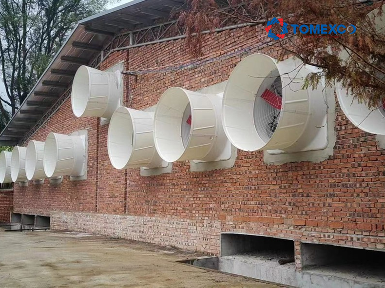 Hệ thống xử lý làm mát trang trại heo chủ yếu dùng các quạt thông gió trang trại, đó là giải pháp tối ưu và tiết kiệm chi phí nhất, điển hình là sử dụng quạt Composite.
